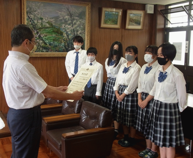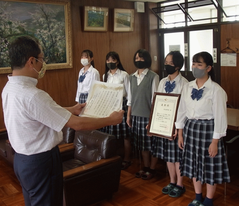 校長室で2チームの表彰を行いました。