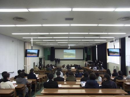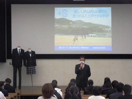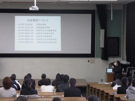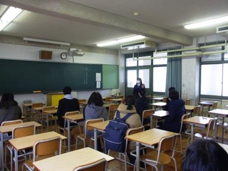 まず教員が、本校の沿革・立地や主な通学手段・カリキュラム・学習環境・進路指導等について説明をしました。
