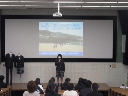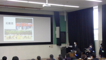 続けて生徒会執行部の生徒が部活動や学校行事などの学校生活の紹介を行いました。