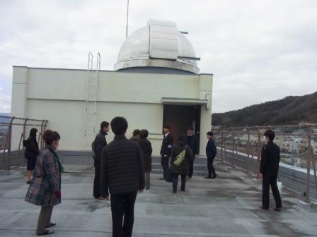 2/1(土)10時より、第5回学校説明会を開催しました。曇り空でしたが、中学生と保護者の方にお越しいただき、本校の概要説明と校内見学を行いました。今回は比較的に少ない人数でしたので、ゆったりと見学ができ、全員の皆さんが天文ドームまで上がり、自慢の35cm反射望遠鏡を見ていただきました。