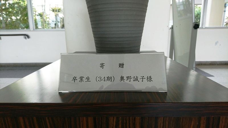 奥野様にはわざわざ本校までお花をご持参いただきました。