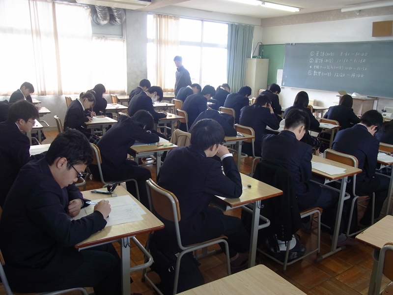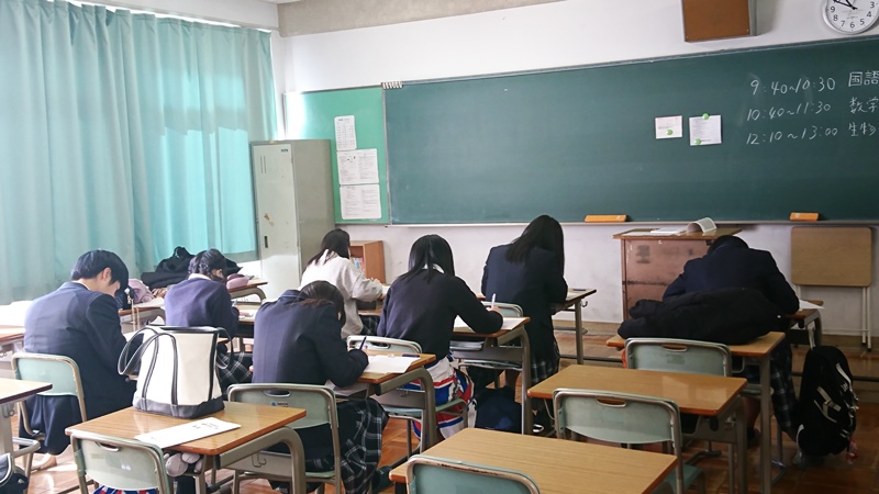 本校では1、2年生が校内で模擬試験に取り組みました。