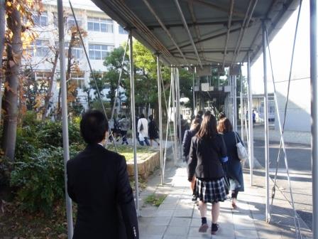 学校見学の引率と説明も生徒会が行います。北館からはグラウンドでのクラブ活動の様子も見ていただきました。