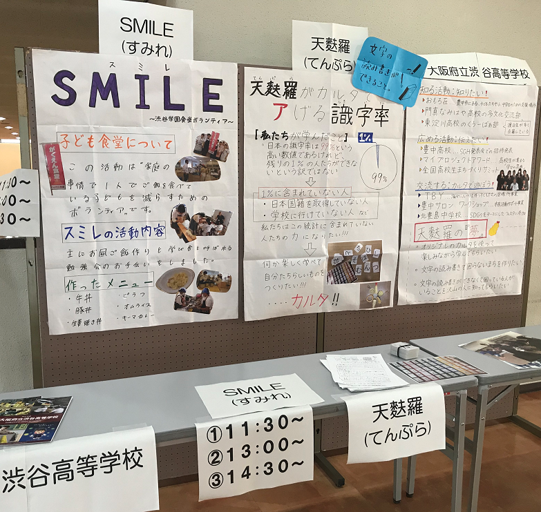12/14(土)に池田市民文化会館(アゼリアホール)で、「池田教育フェスタ」が開催され、渋高生がブースを出しました。