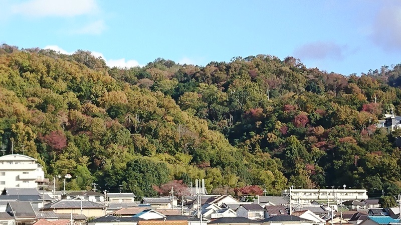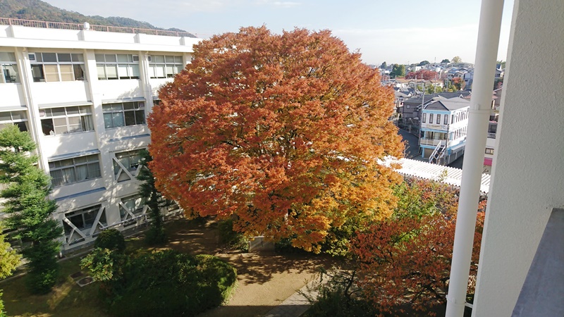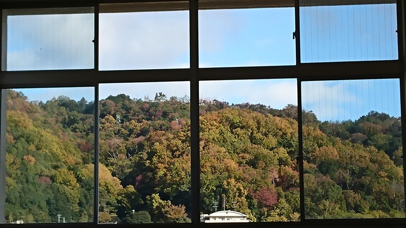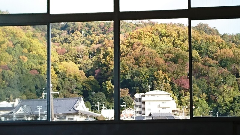 「私は北館校舎の廊下から、階段踊り場越しに眺める五月山の姿を気に入っています。