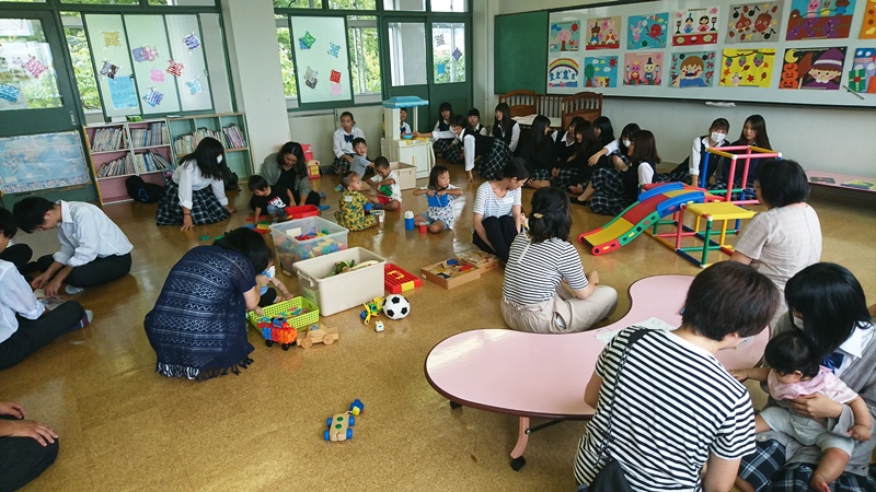 本校では2年生家庭科の授業で、地域の乳幼児とその保護者とふれあう保育実習を開催しています。