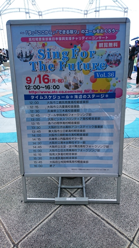 9/16(月)アコースティック音楽部の南港ATC「海辺のステージ」での