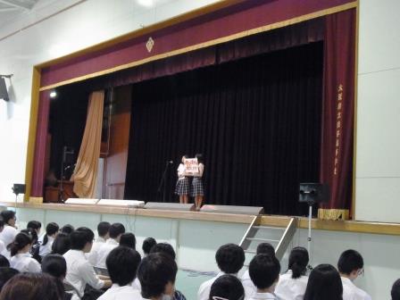 生徒会長と校長先生からのあいさつの後、生徒会が作成したオープニング動画が公開されました。