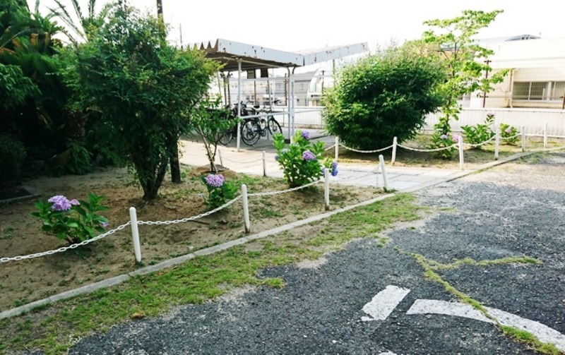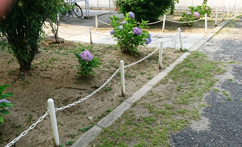 自転車で通学してくる生徒を両サイドから出迎えてくれています。