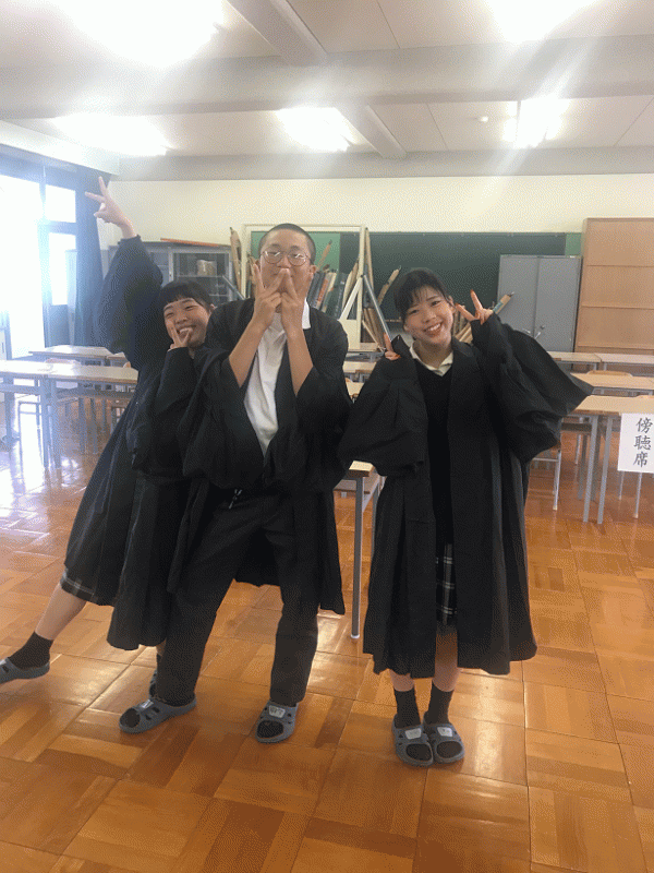 生徒たちはシナリオをもとに配役になりきって演技しました。