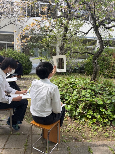 生徒たちは2週に渡り、お手製の「枠」を使用してお気に入りの景色をトリミングをし、木炭で風景画を描きました。
