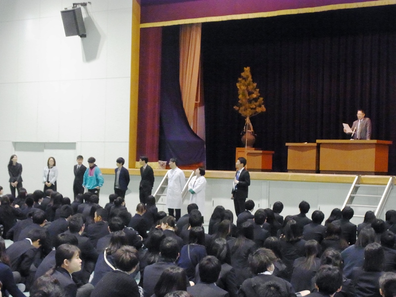 校長の式辞の後、生活指導部長、進路部長から講話があり