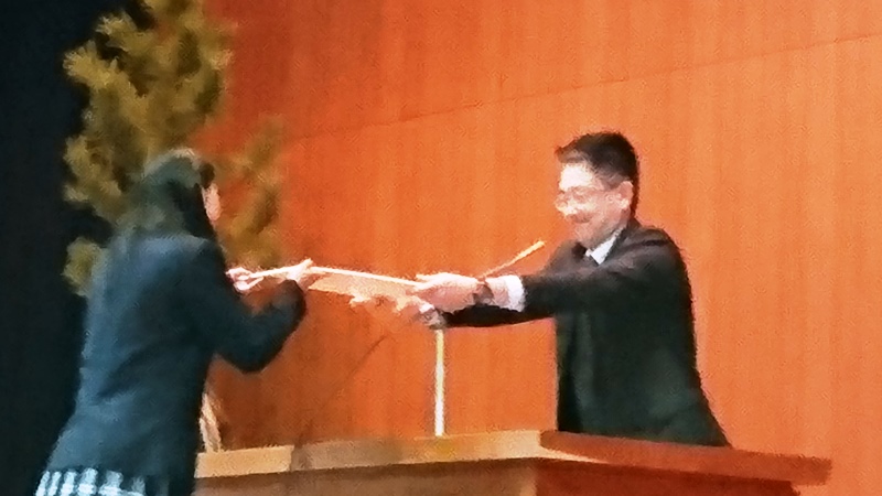 何事もやってみないと可能性はゼロです。「やったらできる。やらなできん!」夢をおってください。自らの可能性に チャレンジし続けてください。自分自身を大切にし、毎日の努力を積み重ねれば、必ず展望は開けます。」とお伝えしました。