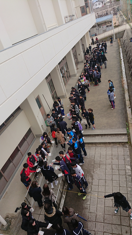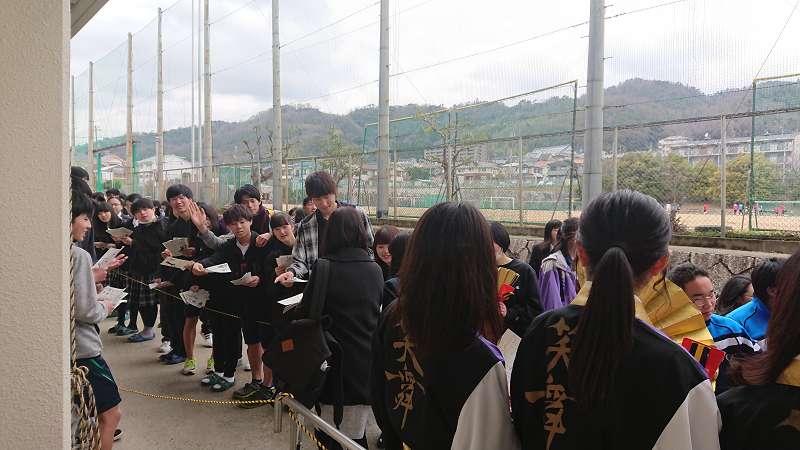 新入生の合格者説明会を前に、各部活動の生徒が勧誘を行いました。