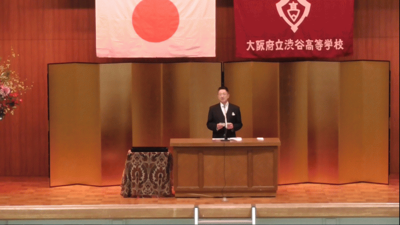 また、本日は公私ご多用にも関わりませず、ご来賓として大阪府教育委員会ご代表をはじめ、多数の方々にご臨席賜り、この式典に花を添えていただきましたことは誠にありがたく、厚く御礼申しあげます。
