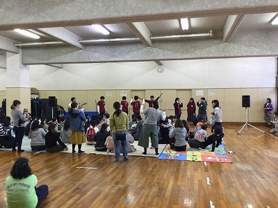 11/19(月)子育て支援ラクーダ会議主催の「あそびうたライブ」が本校で開催されました。