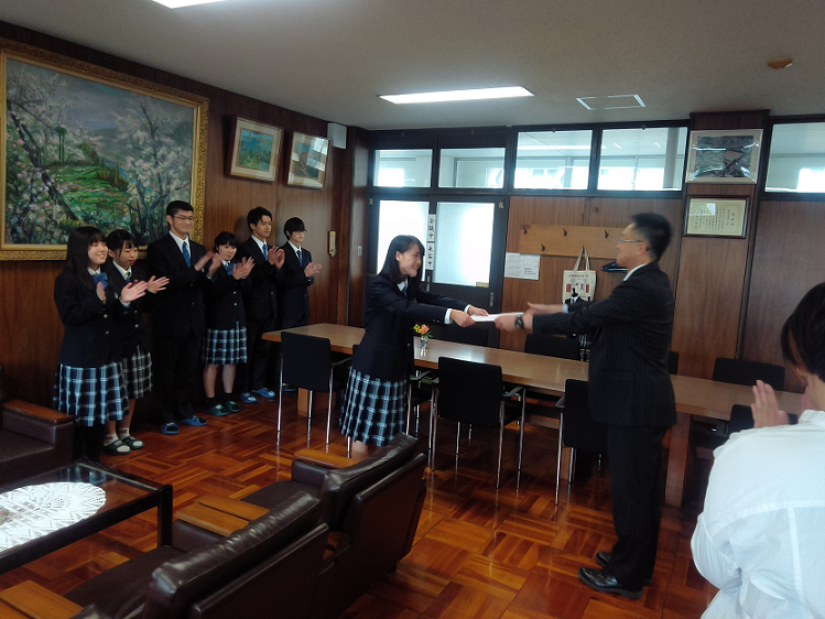 一人ずつ順番に校長先生から認証状を受け取りました。 その後、執行部は校長先生に自己紹介をし、今後の抱負を語りました。