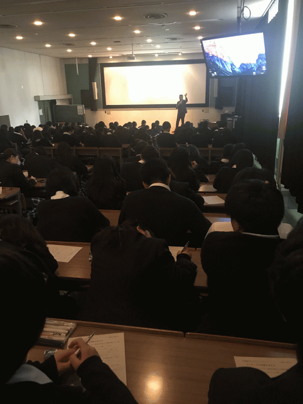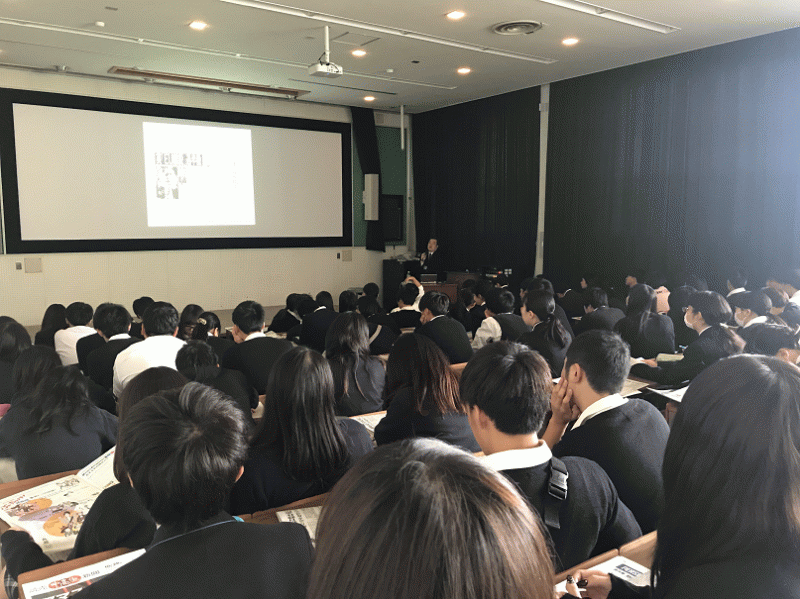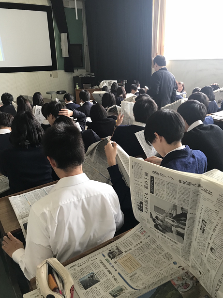 今回、読売新聞社で記者をされている方をお招きし、「新聞の読み方」や記事がどのように作られるのか、直接お話を伺いました。 「情報を前に疑ってかかれ!」との言葉で、講話が始まり、正確な情報にアクセスすることや思考力・判断力を鍛えることの必要性をお話下さいました。