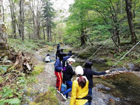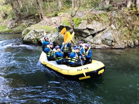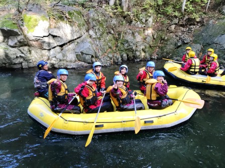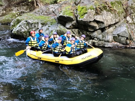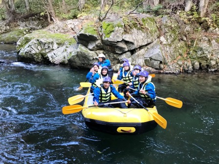 川の流れが速くなる小さな滝状のところでは盛大に水をかぶります。ドライスーツを着ていても濡れる人が続出しました。しっかり乾かして風邪をひかないようにしましょう。でもスリル満点で大きな歓声と悲鳴が上がっていました。