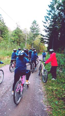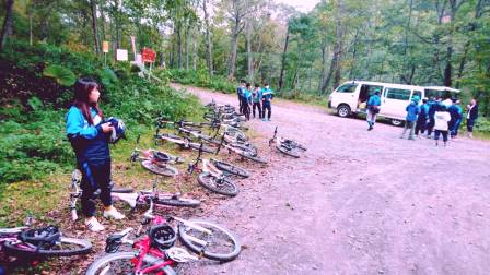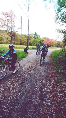 マウンテンバイク(1〜4組)の様子です。午後からは気温も上がり、自転車をこぐと暑いくらいだったでしょうか。それでも止まるとすぐに涼しくなるのはさすが北海道です。