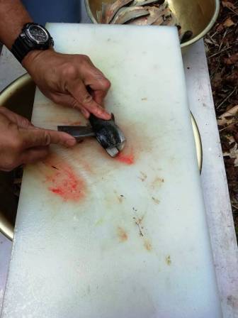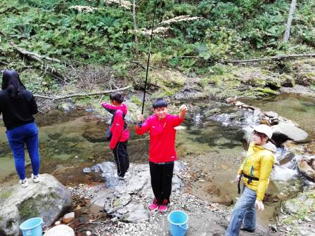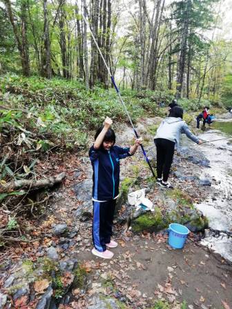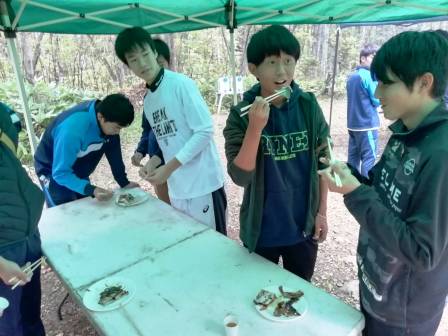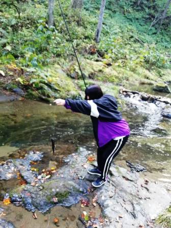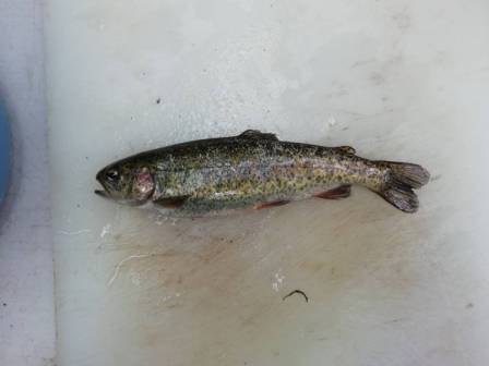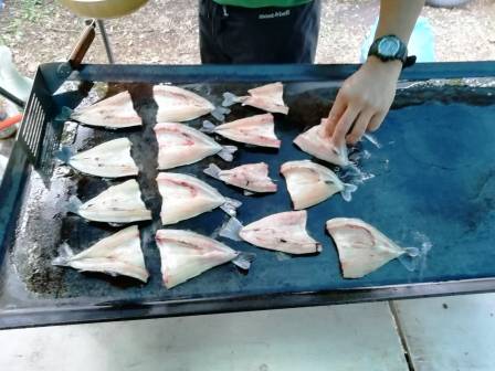 釣った魚はすぐにその場で捌いておいしくいただきました。写真の魚はニジマスです。