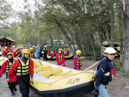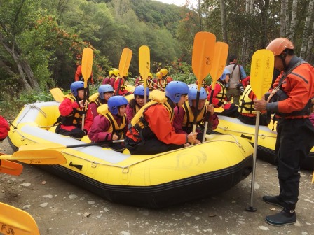 朝食後にラフティング及び選択体験に出発します。