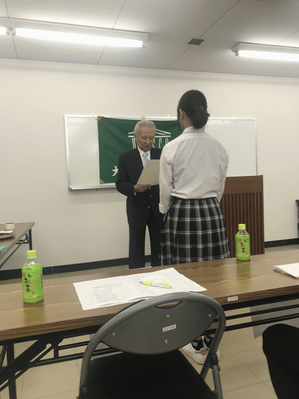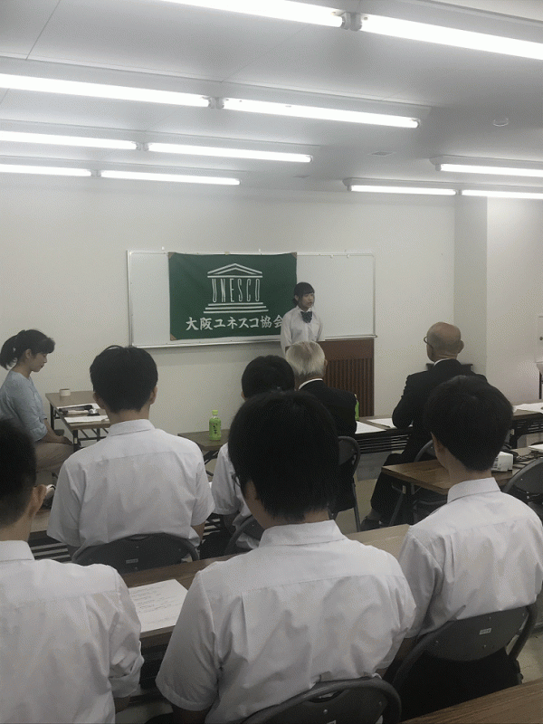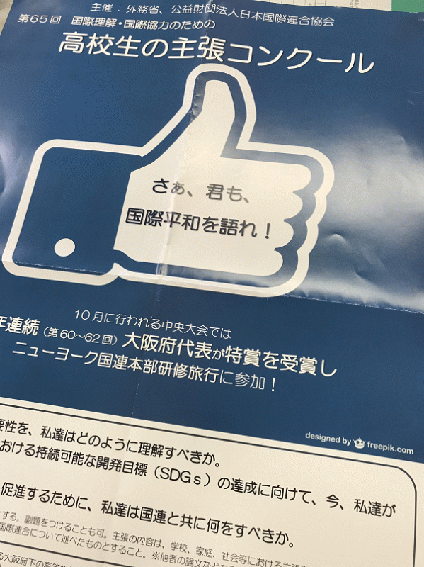 9/15に「第65回国際理解・国際協力のための高校生の主張コンクール」(外務省主催)の 大阪府大会が大阪ユネスコ協会で行われ、3年の山田ほのかさんが優秀賞に入選しました。