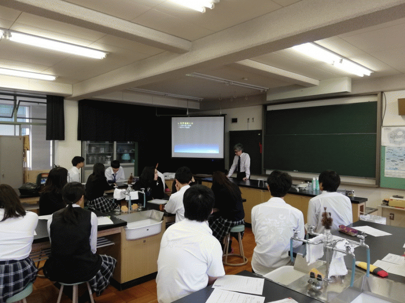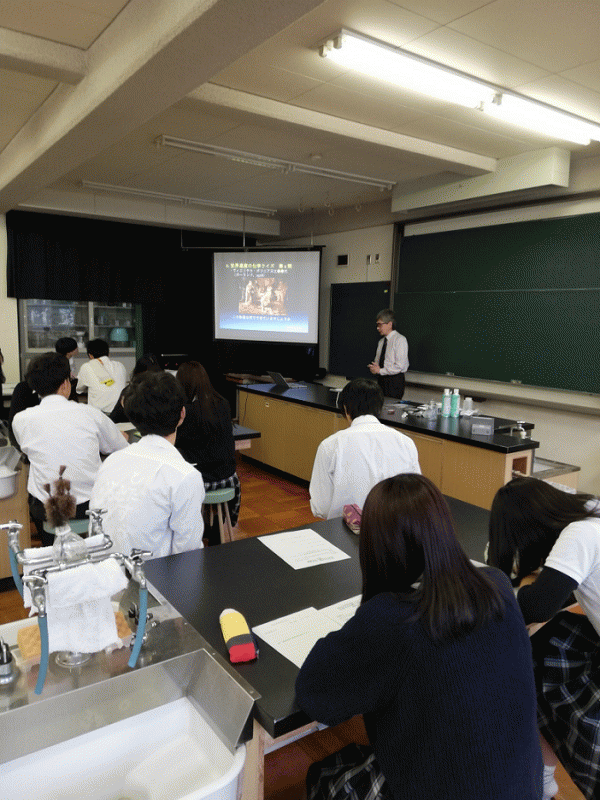 今日から3回、ライフサイエンスでは、大阪産業大学から講師をお招きして身近な科学について学習します。