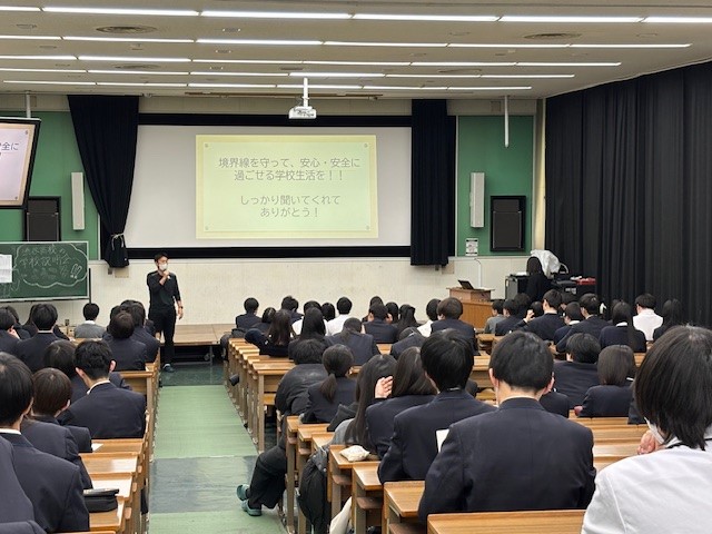講演会で、人との付き合い方において、境界線(バウンダリー)を超えないこと、同意は「真の同意」を得ること、いやと言っていいこと、困ったことがあったら信頼できる大人に相談しよう ということを学びました。もうすぐ、79期生は学校の中心となる2年生になります。人間関係のルールをお互いに守って、楽しく充実した高校生活を送り、生涯も幸せな人生を歩んでいってほしいと願っています。