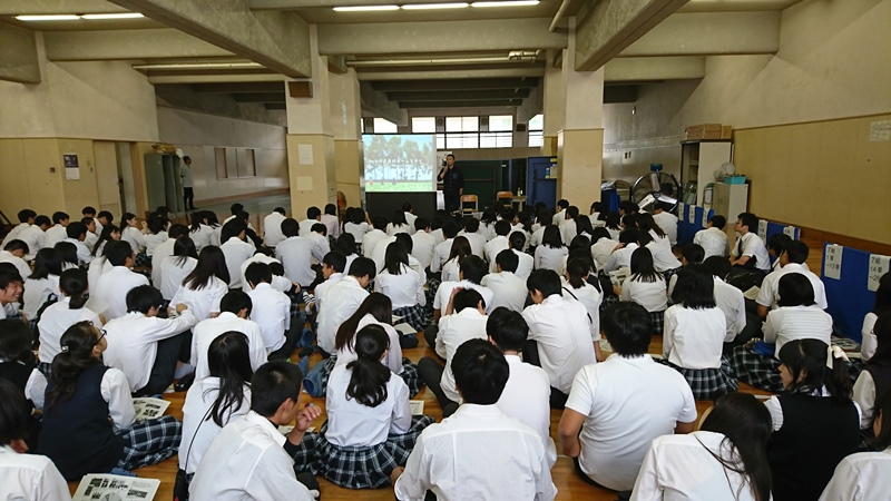 今年の2月に行われたマイプロジェクトアワードの関西大会で審査員をされていた立命館宇治高校の先生とのご縁で、 高校1年生の7クラスに、渋谷地球防衛隊の活動をプレゼンしました。