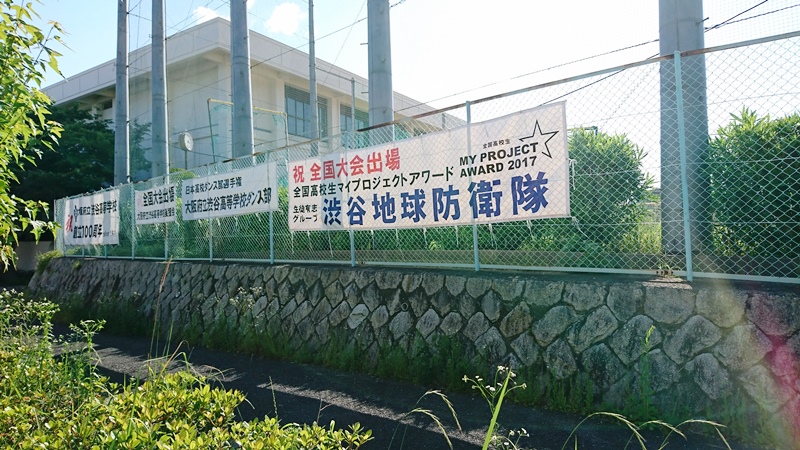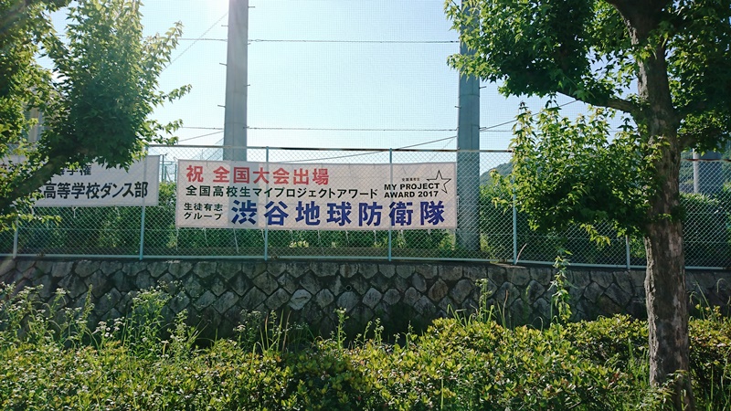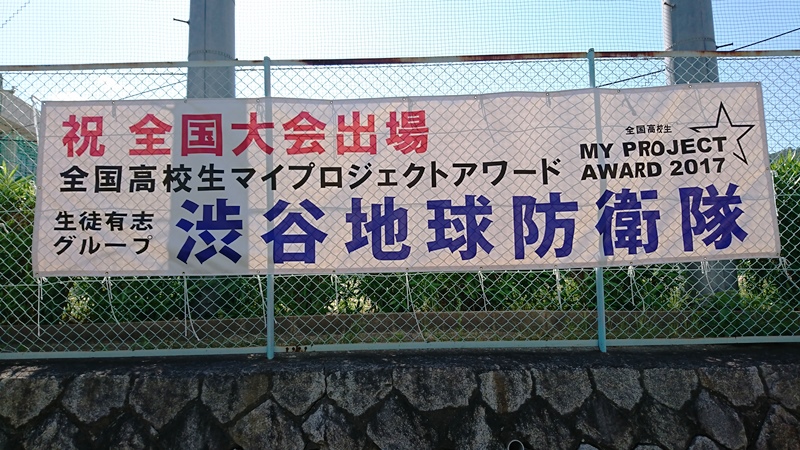 有志グループ「渋谷地球防衛隊」の全国大会出場を記念した横断幕が