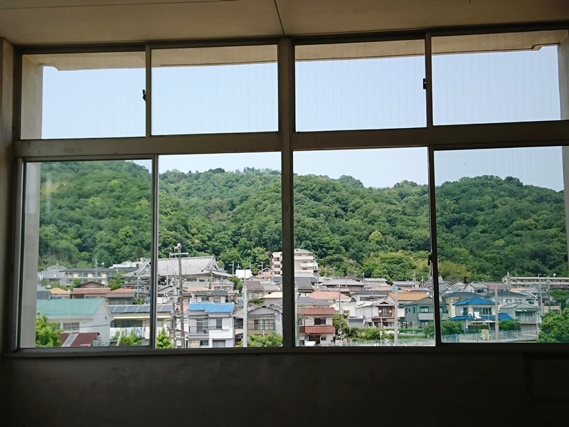 「私は北館校舎の廊下から、階段踊り場越しに眺める五月山の姿を気に入っています。