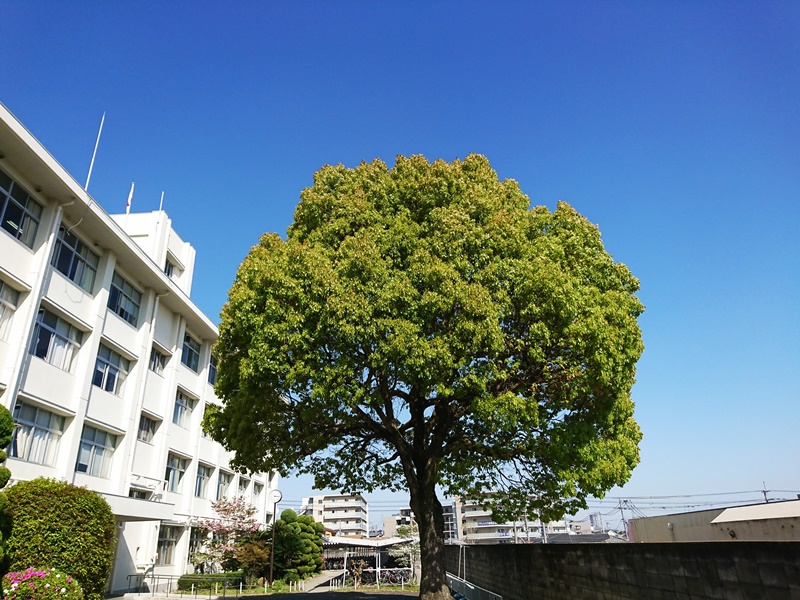 大きなクスノキも青空(渋高ブルー)もどちらも本校の自慢です。