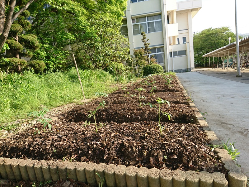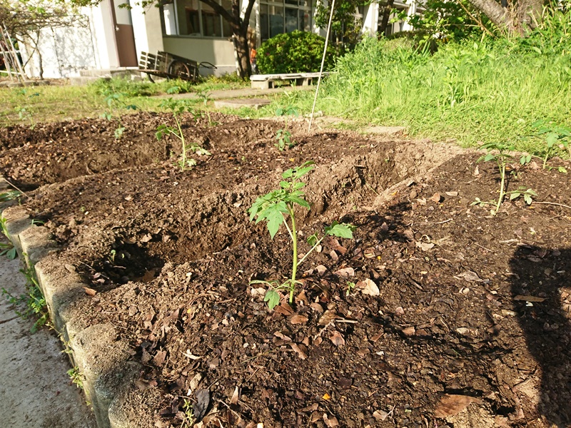 それに続き、トマトの苗を植え、バジルの種をまきました。収穫が楽しみです。