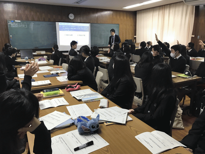3年の政治・経済では、財務省近畿財務局の方をお招きして、国の予算を考えるワークを行いました。