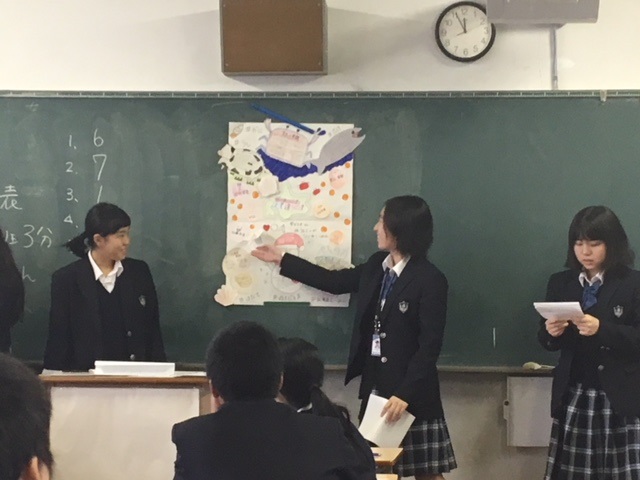 11/8(水)1年生総合学習の時間に学年全体でプレゼンテーションを行いました。