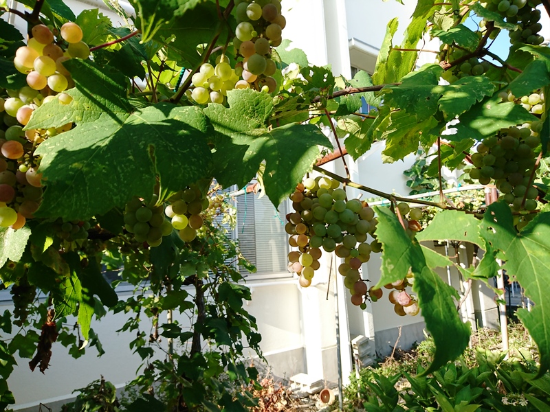 ぶどうは粒の大きいものと小さいものの2種類で、どちらも種ありですが味は十分満足できます。