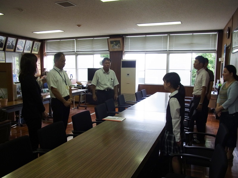 校長室で日本教育弘済会大阪支部ご代表から、教頭・首席・学年主任・担任・奨学金担当が見守る中、直接生徒本人に奨学金を手渡されました。受け取った生徒は、お礼の言葉を述べました。 ご代表からは励ましの言葉もいただきました。