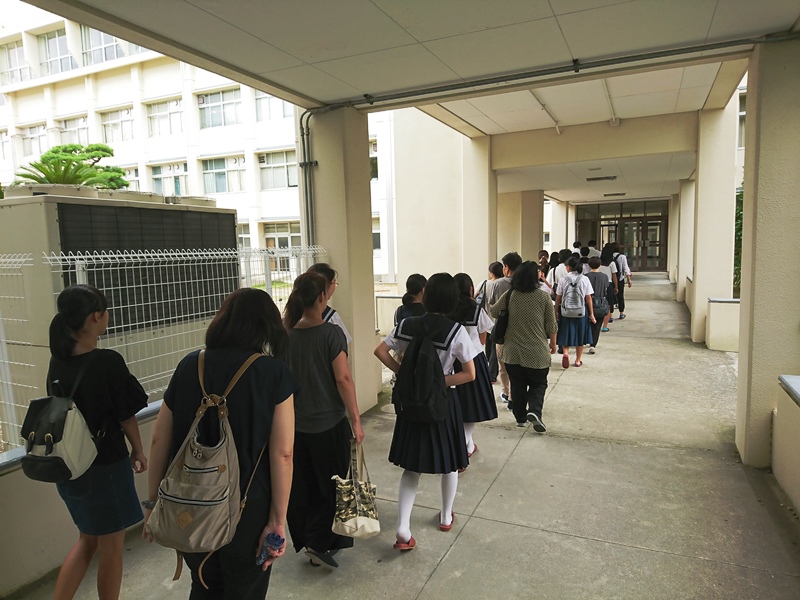 地震によって本校食堂から火災が発生し通行できないという想定で、生徒全員が各クラスの避難経路に従って落ち着いて避難することができました。生徒一人ひとりが、防災について事前に考え、安全な行動について再確認できる機会となりました。災害がいつ起こってもあわてず、適切な行動がとれるよう普段から備えておくことが大切です。