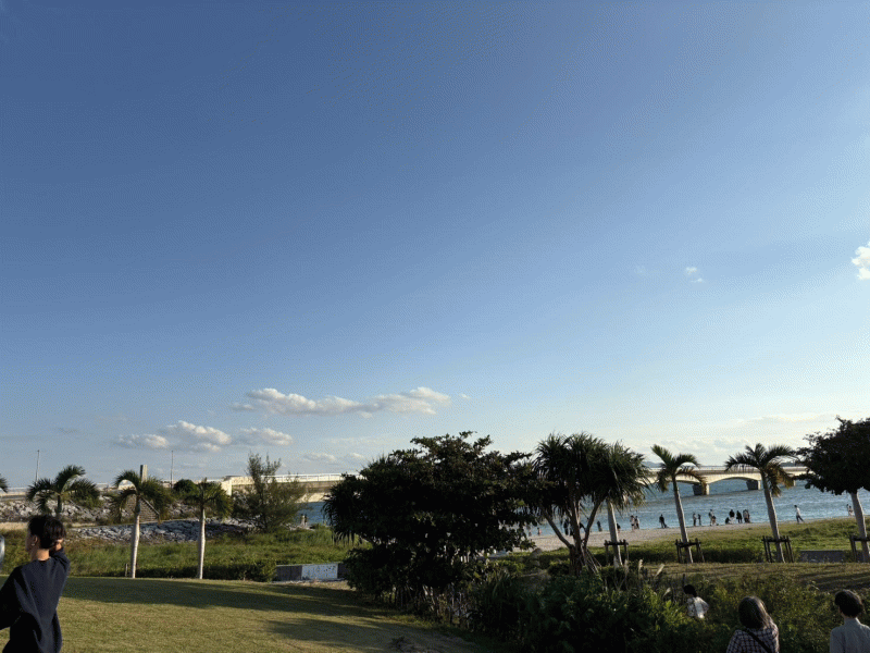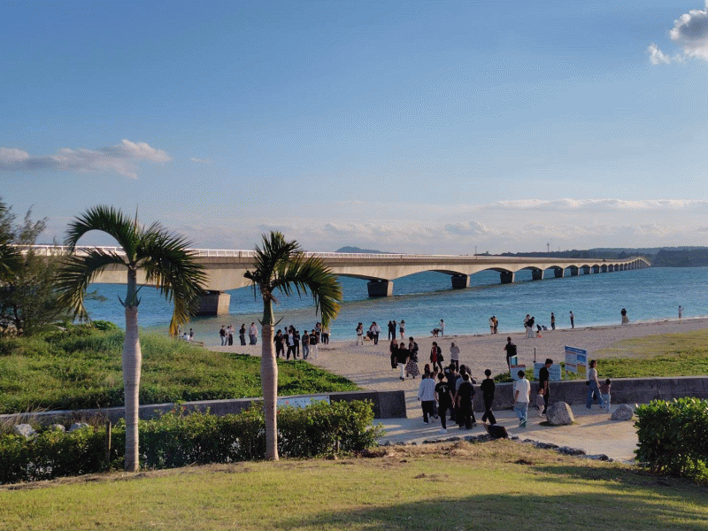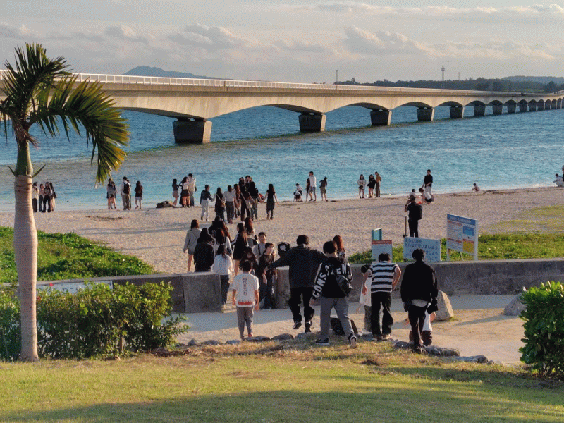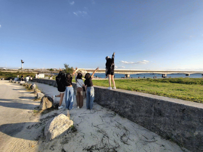 13:00 無事に那覇空港に到着しました。バスにて古宇利島に向かいます。皆、元気いっぱいです。