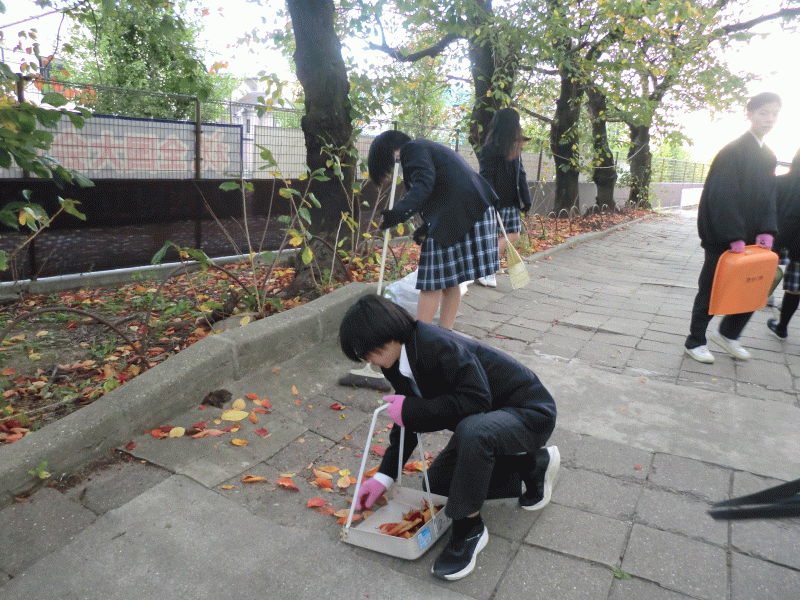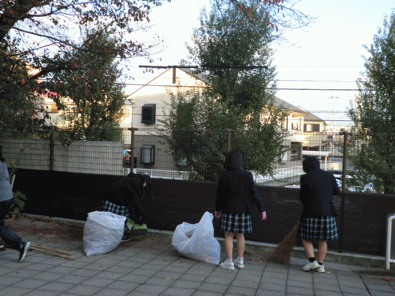 1年生保健委員と、1年有志の生徒が、校舎周りの清掃活動を行いました。