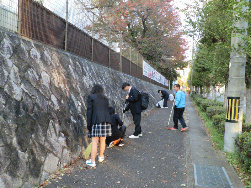 桜並木からのたくさんの落ち葉でしたが、皆で協力しながら、清掃活動をすすめました。