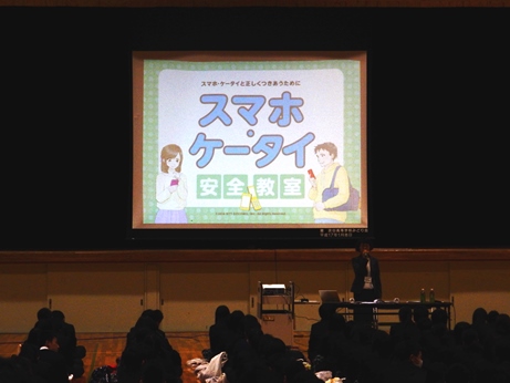 本日の1年生の総合学習では、外部講師を招いて、スマートフォンや携帯電話でのSNSの正しい使い方を学びました。