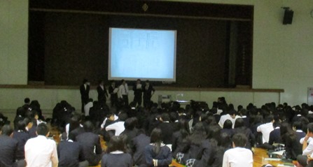 2年生全員が体育館に集まって行われたプレゼン大会は、どのクラスも堂々としていて、体育館フロアが笑いと拍手に包まれる楽しいものとなりました。