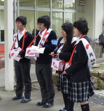 11月9日(月)から11日(水)の3日間、生徒会執行部が中心となって、赤い羽根共同募金に取り組みました。