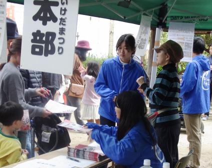 まつりの当日は、ステージの展開補助やゲームコーナー、プログラムの配布などを担当しました。