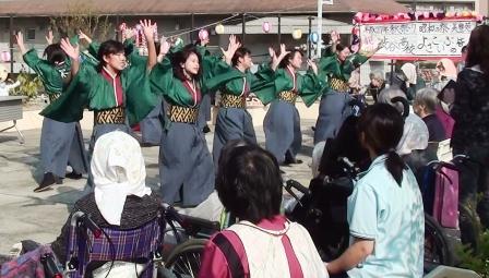 10月24日(土)に、豊中市内にある老人ホーム「美豊苑(びほうえん)」の秋まつりで、よさこい部「IZA笑舞」の1年生が、元気よく演舞を披露しました。