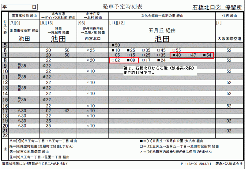 大阪市内、豊中市内から石橋下車、「石橋北口」からバスに乗られる時の注意点です。