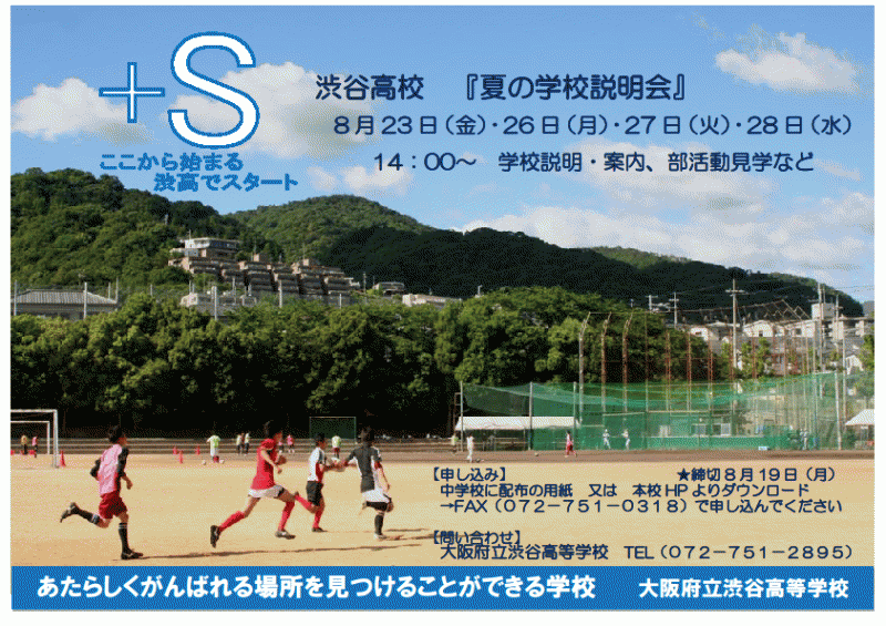 申し込みはFAX(渋谷高校 072−751−0318)で。