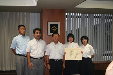 放送部と女子バレーボール部が池田市長に表敬訪問に伺いました。